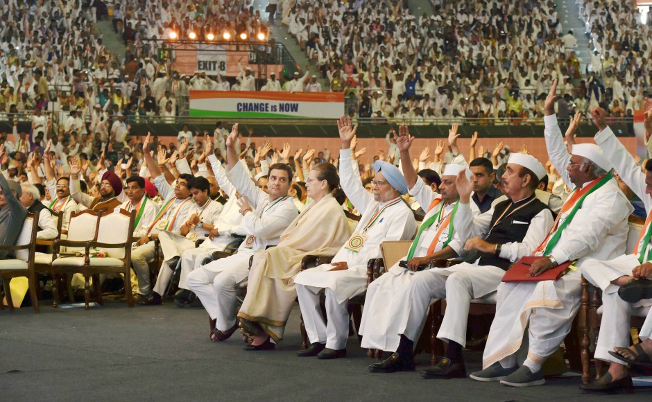 The meeting was attended by the party’s top leaders, including Manmohan Singh and Sonia Gandhi, its mandarins from across the country and workers. PTI