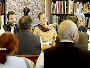 [caption id=“attachment_4218729” align=“alignleft” width=“380”]  Rahul Gandhi, Sonia Gandhi and Manmohan Singh at the CWC meeting. PTI[/caption]