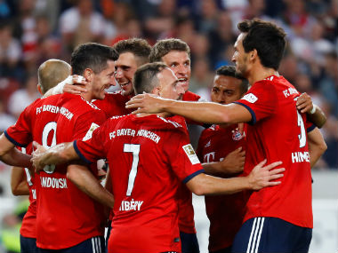 Berlin: Leon Goretzka scored his first goal for Bayern Munich as the Bundesliga champions cruised to a 3-0 win over southern rivals VfB Stuttgart to go top of the table on Saturday. [caption id=“attachment_5098111” align=“alignleft” width=“380”] Bayern Munich’s Thomas Mueller celebrates scoring their third goal with teammates. Reuters[/caption] The Germany international who joined from Schalke 04 in July had several chances in a hard-fought first half and eventually curled the ball into the bottom corner on 37 minutes. “I feel very happy here, and the team has made me feel welcome,” Goretzka told Sky. “If you feel comfortable, you can put in your best performances, and I showed that today.” Bayern took control after the break, and Goretzka was involved again as Robert Lewandowski doubled Bayern’s lead just after the hour mark. The Polish striker arrowed in a superb shot from the edge of the area to maintain his perfect scoring record in all competitions this season. Fifteen minutes from time, Lewandowski linked up beautifully with Thomas Mueller, who lashed in Bayern’s third. “We’re showing the right attitude,” Mueller told Sky. “The way the front line are pressing the ball is impressive. With the amount of quality we have in the squad, everybody has to deliver.” Earlier in the day, Adam Szalai scored twice as Hoffenheim came from behind to win 3-1 against Freiburg, while Bayer Leverkusen collapsed to a second defeat in their second game of the Bundesliga season. Julian Nagelsmann had criticised VAR after defeat to Bayern last week, and the Hoffenheim coach looked on furiously as the video assistant correctly denied his team an early goal against Freiburg. Nagelsmann’s mood darkened further when Dominique Heintz prodded Freiburg in front on 36 minutes, but Szalai saved Hoffenheim with a brilliant second-half brace. Szalai capitalised on a defensive mix-up to draw Hoffenheim level just after the break, before turning a Nico Schulz cross into the net on 63 minutes. Andrej Kramaric sealed victory on the counter-attack in stoppage time. Nightmare start An abject defensive performance saw Leverkusen go down 3-1 at home to Wolfsburg, after Leon Bailey had given them the lead with a brilliant first-half strike. Leverkusen keeper Ramazan Ozcan allowed Yannick Gerhardt’s equaliser to beat him at the near post on 36 minutes, and Bayer’s defensive nightmare continued after half-time. An unmarked Wout Weghorst headed Wolfsburg ahead on 55 minutes, before Renato Steffen broke through the back line to seal Leverkusen’s disastrous start to the season. “We travel to Bayern Munich next week, so we have to cross our fingers and grit our teeth,” Ozcan told Sky. “It’s a marathon, not a sprint.” Milot Rashica’s brilliant free-kick saw Werder Bremen steal a dramatic late win against ten-man Eintracht Frankfurt. Japanese international forward Yuya Osako’s opener for Bremen was given by VAR on 22 minutes, and Frankfurt looked dead and buried when Jetro Willems was sent off before half-time. Sebastien Haller’s penalty drew the home side level after the break, but Rashica broke Frankfurt hearts with a vicious, curling free-kick deep into stoppage time. Elsewhere, there were 1-1 draws between Borussia Moenchengladbach and Augsburg and Nuremberg and Mainz. Michael Gregoritsch put Augsburg ahead with a fine half-volley on 12 minutes, before Alassane Plea came off the bench to head Gladbach level in the second half. New signing Jean-Philippe Mateta headed Mainz in front midway through the first half, before Mikael Ishak drew the home side level with a net-bursting shot just after the break.