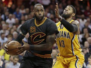 Washington: LeBron James scored 31 points, Kyrie Irving added 26 and Kyle Korver had 22 to spark defending NBA champion Cleveland over the visiting Indiana Pacers 113-104 on Wednesday.