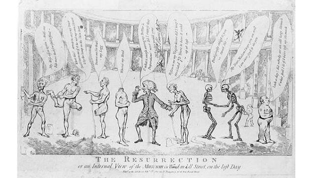pointed out that the body produced a lot more matter over the course of a lifetime than it needed, in the form of fingernails, hair and shed skin. Perhaps this superfluous material could make up any shortfall? For the most part, however, writers on this subject followed the lead of poet and clergyman John Donne, who insisted (though a little too fervently) that God would sort everything out in His own mysterious way. God, preached Donne, “sits in heaven, and spans all this world, and reunites in an instant armes, and legs, bloud, and bones, in what corners so ever they be scattered”. It might seem to mere mortals that resurrection was fraught with problems, but good Christians should have faith that even their “scattered body” would be repaired and recompacted. [caption id=“attachment_9481021” align=“alignnone” width=“640”]