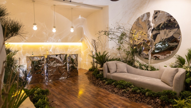 The confluence of art and design was visible through the curated pieces of Bangladeshi artists Tayeba Begum Lipi and Mahbubur Rahman at ArttD’Inox. Photo: Manoj Kesharwani[/caption] Though well-attended, the VIP Preview had some glitches – a number of booths were not set up, and a few others were not prepared with information and cards, as they hadn’t expected any buying customers that evening. This annoyed a few regular patrons whose only objective of trekking out on a Wednesday night had been to grab the best pickings. Drinks and snacks on the house, however, made up for this, and allowed one to spend time analysing the exhibits that were open. Of these, the ones that particularly stood out included Arari Millwork Experience’s elegant moving teakwood library and stately wooden structure surrounded by a single-piece leather bar; Neytt by Extraweave’s striking single-line art carpets made in collaboration with Dutch designer Niel Kiene Salventius; the freewheeling graffiti amidst nature named ‘El Rincon Perdido’ or ‘The Lost Corner’ of White Domus Designs in collaboration with Spanish artist Javi Escobar; the confluence of art and design through the curated pieces of Bangladeshi artists Tayeba Begum Lipi and Mahbubur Rahman at ArttD’Inox; and the strong statement of sustainability and feminism displayed at The Pea Family Studio helmed by the anonymous performance artist Princess Pea. These works caught my eye for their stark visual appeal and strong message, yet it wasn’t until I attended The Art Appreciation Society’s curated walkthrough of Design ID on Day three, that I had the chance to delve deep into the gamut of talent and design sensibilities on display. It was led by Misha Bains, who was ably accompanied by Princess Vaishnavi Kumari of Kishangarh, Art Historian and founder of Studio Kishangarh, an organization that works to preserve and promote the work of Indian miniature artists. As the custodian of Design ID, Bains handpicked a few booths to walk us through that she felt best represented the diversity of the design industry. The walk began in the Design Pavilion with the multi-design studio from Jaipur - AKFD, before moving to The Quarry’s Monsters in Love single-piece marble collection designed by Architect Karan Desai known for his out-of-the-box creations. From there, we visited 8/10 One Studio whose clean wood and metal art deco-inspired pieces appealed across the board; This and That which ingeniously wove traditional crafts into modern pieces such as the lac-inlaid bottoms of toadstool-shaped tables; Jaipur by Within which was a selection of beautiful marble pieces inlaid with blue pottery, inspired by the city of the same name; and the quirky iridescent furniture at Hatsu. We were then led to the Decoration Pavilion to the stall of K2India helmed by Kohelika Kohli who offered soothing multi-use interiors to suit post-pandemic considerations. Next, we sampled the mixed aesthetics of Beyond Design who aren’t afraid to pair traditional Indian motifs with European chintz. This was followed by stops at Carpet Cellar whose stunning collection of ancient and new carpets had us enthralled; Vida Heydari Contemporary – an art gallery from Pune aware of the importance of art as an item of home décor; and Shanti Benaras who are working to preserve the embroidery practice of Benarasi artisans by commissioning them to embroider copies of intricate Pichwai paintings. Our tour ended with the piece de resistance – the Kohler bathroom sink made by the first ever Indian winner of their global Artist Editions contest. Artist Jaiprakash had recreated a detailed miniature painting of a forest, evoking a sense of calm in a chaotic world. [caption id=“attachment_10694741” align=“alignnone” width=“640”]