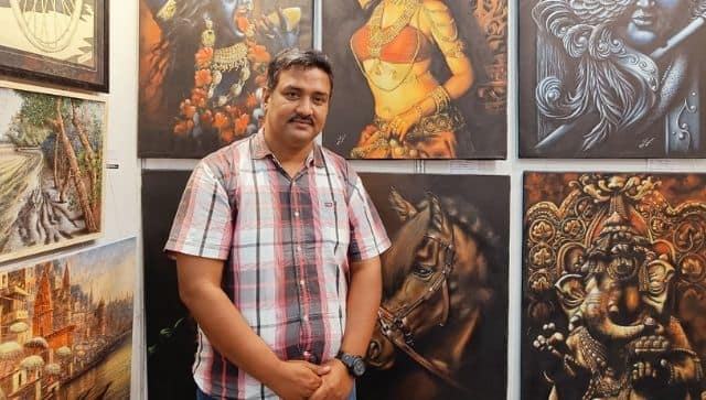 The India Art Festival (IAF) has acquired a unique space for exhibiting and promoting independent artists and their works. In its sixth edition, the festival is trying to make up for the lost time due to the pandemic-induced interruption by presenting 450 artists, with a combined portfolio of 3,500 artworks spread across 25 galleries and 85 booths. The most striking works on display, however, are by self-taught artists. Half of the people I got in touch with had trained themselves. And over the years, they’ve either started pursuing their ‘hobby’ professionally only recently or converted their interest area into a full-fledged ‘career’. In exclusive conversations with Firstpost, six such artists talked about their art and their process. Edited excerpts. Manoj Kumar Swain, 47, Bengaluru Introducing himself as “not a professional”, this Bengaluru-based software engineer currently working with the Swiss Bank was “always interested in the art”, but started investing his time and energy into painting three years back. His hyperrealism clearly stands out in his art. He usually likes to work on a “black background and black canvas” and always “tries to play with shadow and light effect”, as it gives his paintings a three-dimensional appearance. He enjoys acrylic on canvas but wants to work with oil on canvas, too. Through his work, Manoj aims at highlighting the central emotion of the figures in his paintings: be it ferociousness (Kali), desire (woman), grief (horse), or bliss (Krishna). He invokes a cinematic analogy to share that he wants to exhibit the liveliness in everything, even a “stone statue can come out alive in a painting if you pay attention.” His work is exhibited by Uchaan Foundation, Gurugram.