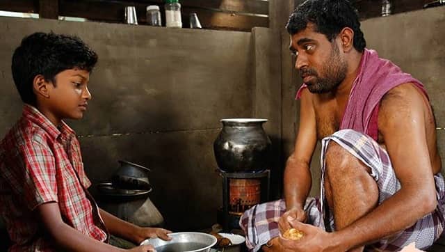To call Perariyathavar (2014; Malayalam; dir. Bijukumar Damodaran) a drama, tragedy or indeed any existing movie genre would be to reducing it to a limited, popular definition of cinema. If it has to be defined, then Perariyathavar is magical objectivism. The movie does not claim to be fictional, warning us at the very beginning: “All the incidents portrayed in the script have been occurring in Kerala (India) for the last 10 years.” And yet, to us viewers, these characters appear to be from another world — a world to which we shut the doors of our eyes long ago. Perariyathavar’s biggest achievement then, is that it takes us into this long-invisibilised world, through the eyes of a man (played by Suraj Venjaramoodu) employed as a sweeper with the Kollam Municipality Corporation and his son (master Govardhan). The son often communicates with his deceased mother: a metaphoric intervention in which she becomes a diary for him to note down his thoughts and emotions. The son’s narration and the father’s eyes are the means through which we are brought into this world. Perariyathavar starts with its climax, and we’re then reeled back to the moment where the story actually began. The father and son live in a slum adjacent to a railway line. A garage mechanic, band musicians, young boys from West Bengal who have come to Kerala in search of work — these characters from the locality are the protagonists’ acquaintances. The father and son live in a tin house; during the monsoons, the roof leaks. Their only “window” is a square opening covered by a jute sack. Amid the smells of the sewer, the clatter of passing trains, ban rehearsals, and the neighbourhood cacophony, the father and son maintain silence, nurture a flowering plant, and maintain a small fish-pond; a sub-text of their hopefulness. Subtleties of this kind abound in every frame of the film; neither dialogue nor noise — it is the finely constructed silences that are the strength of Perariyathavar. The use of a background score is rare, but the sounds of the background make each scene appear compellingly real. The audience feels as though they are part of the cinematic moment — the hallmark of a great film. [caption id=“attachment_8598481” align=“alignnone” width=“640”]  Still from Perariyathavar[/caption]