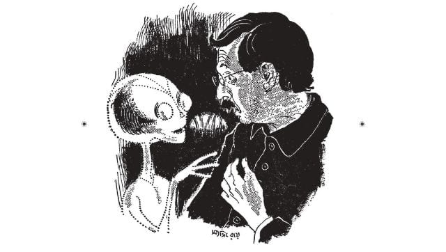 Satyajit Ray (1921-1992), apart from being a filmmaker extraordinaire, was also a stellar designer, music composer, illustrator and writer. Much like the unique aesthetics of his films, Ray’s writings offered premises and milieus often unexplored in Indian literature, especially children fiction. He gave us some of the most iconic characters, such as Feluda and Professor Shonku, whose books are loved and revered by millions of readers even today. Marking the birth centennial of the legend, Three Rays: Stories from Satyajit Ray_, is the first book in ‘The Penguin Ray Library’ series. With more than 40 previously unpublished stories, autobiographical writings and illustrations by Ray himself,_ Three Rays opens a window to the brilliance and creative genius of the renaissance man. The following short story, Bonkubabu’s Friend has been excerpted from Three Rays and reproduced here on Firstpost with due permission from the publishers, Penguin Random House India. The Bengali story was originally published in the magazine Sandesh (February 1962) as Bonkubabur Bondhu_. The English translation by Satyajit Ray, hitherto unpublished, has been transcribed from Ray’s literary notebook. This story was also the inspiration behind a film_ (The Alien) that Ray never made. It is also alleged that Steven Spielberg’s ET and Close Encounters of the Third Kind borrowed concepts from Ray’s script.