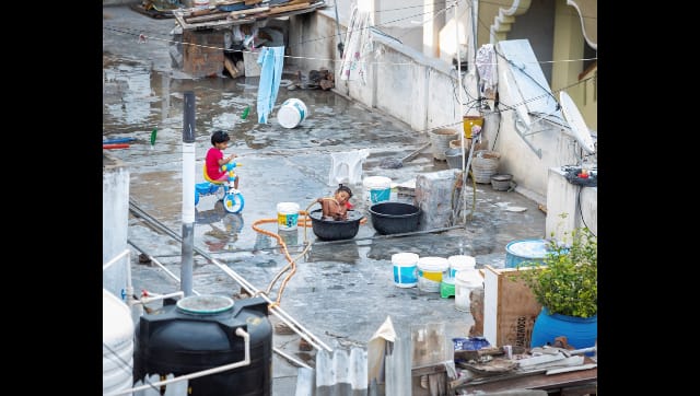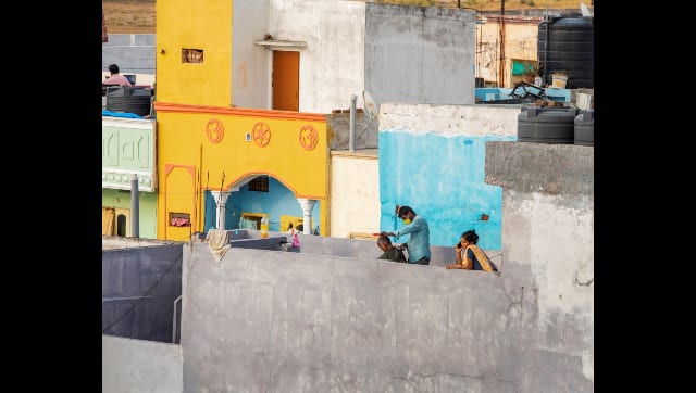 Despite the very social nature of rooftops and terraces (the visibility from other buildings, the fact that they are open to anyone), Rao has managed to capture moments of intimacy, such as couples huddled together. He says that people who lived in buildings close to his own began to recognise him and his everyday routine with the camera. Now, they wave at him and greet him too. “My presence has become so familiar that they have stopped noticing me beyond a point, which has given me the opportunity to capture more intimate moments,” he explains. Also read on Firstpost:  Why the balcony is a socio-political tool for human communication — in isolation, celebration, rebellion It’s almost as though little pockets of intimacy have spilled over outside the home, after being contained indoors for months on end. It also reminds me of the visual of women on terraces visible from my own balcony: girls, middle-aged women, friends, sisters and mothers, lost in their own thought, or very often, engaged in long phone calls – doing things they possibly cannot do at home, or prefer to do in a place where they are not immediately visible to others.