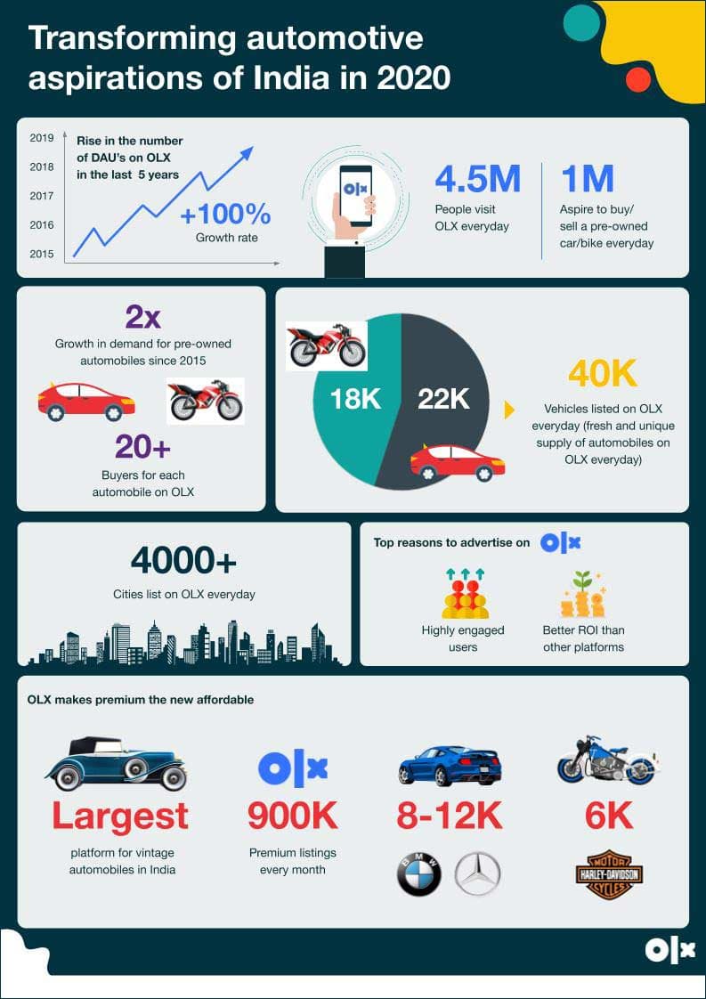 The pre-owned car industry is doing well today as consumers continue to aspire for upgrading their lives amidst the Indian economic slowdown. In this case, pre-owned cars offer a distinct pricing advantage versus new ones. Data from OLX platform suggests that pre-owned cars, as good as new (termed bas unboxed cars), can be almost 20-30% cheaper as compared to new cars. While the new-car market witnessed a muted single-digit growth in FY18-19, the market for pre-owned cars grew at an impressive rate of 15%. Rising inventory, economic slowdown, regulatory changes, escalating international trade woes, and industry developments meant fewer sales of new cars even during the festive season. The performance during the festive season period of August-November 2019 will be critical to gauging the health of the new-car market, and the industry waits with bated breath. The market for pre-owned cars, on the other hand, is poised to continue to grow healthily, driven by steady and increasing customer appetite. In times of tempering economic growth, customers tend to scout for value deals, and defer purchasing new items. This is a catalyst for the rising sales of pre-owned cars; pre-owned cars can be bought at 20-30% lower costs compared to their newer counterparts. Coupled with the key role technology is playing and will continue to play in making the market more organised, makes the market well positioned to continue to grow in the future. The pre-owned car market is currently estimated to be $ 14 billion, and OLX estimates that it will have risen to $ 25 billion by 2023. At 1.4 times the size of the new-car market, pre-owned cars currently comprise a majority of the overall automotive sales in India and will have touched over 5 million units by 2020 and 6.6 million units by 2023.