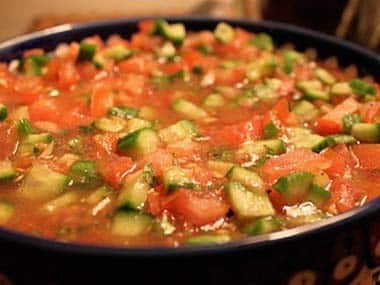 Middle Eastern food has reached all corners of the world. At the very least, I have seen kababs and falafel in just about every country I have visited. The flavors differ, depending on the origins of the cook. Preparing Middle Eastern food at home is not too complicated since meals comprise of simple but fresh ingredients, and some key spices such as sumac, za’atar, all spice, cumin, and lots of fresh herbs, lemon and garlic, and, of course, olive oil. I’ve had amazing and reasonably priced olive oils from Jordan, Turkey and Lebanon. When Middle Easterners cook, portions are big! Getting invited to a Middle Eastern home for dinner is a great. An array of dishes is laid out on the table. Dining is about family and togetherness. Recently, I was lucky to be taught how to make some great Middle Eastern food. Here is what I learned. Lina and Marie’s Homemade Hummus Have you ever made hummus that just didn’t taste quite right and wondered how you could go wrong if it’s so easy to prepare? I know I have. I once made hummus from one can of garbanzo beans for a party of eight and ¾ of it was still left over after my guests went home. So when my sister-in-law raved about her good friend jewelry designer Lina Shatara’s homemade hummus, I asked Lina and her sister Marie to teach me how to get it right. I used to add olive oil into the food processor with the other ingredients. Lina taught me to add olive oil at the end, on top of the hummus, rather than mixing it into the hummus. Once you have the basic hummus recipe down, you can get creative and add anything that sounds good, such as garlic, lemon zest, hot peppers, sun-dried tomatoes, herbs. There are many possibilities. This easy recipe uses canned garbanzo beans. As always, try to find a can of garbanzo with no unnatural additives. [caption id=“attachment_5905” align=“alignleft” width=“380” caption=“Chick Pea Hummus. Image from Debika’s blog http://www.quincesandlemons.com”]  [/caption] Ingredients: - 1 can garbanzo beans (chickpeas) - 1 tbsp tahini - Juice of one lemon (or more to taste) - Salt to taste - Olive oil - One small garlic clove (optional) - A bit of chopped jalapeno (optional) Preparation: 1. Open the can of garbanzo beans and drain the juice into a bowl. Save the juice. It is key to making good hummus. Save a few garbanzo beans for garnishing. 2. Put the garbanzo beans into a food processor. Add the lemon juice, salt, tahini and 2 tbsp of the liquid from the can. Blend together until it is very smooth. Add more liquid from the can or lemon juice until it has a good consistency. It should not be too thick. Taste for seasoning. This is your basic hummus. 3. If desired add garlic or jalapeno. Blend again. Be sure to add very little garlic at a time because raw garlic has a strong flavor that can be off putting in large quantities. 4. Transfer the hummus to a bowl. With the back of a spoon, flatten the top of the hummus to make it look nice. Garnish with your best olive oil and the reserved garbanzo beans. I sprinkled a bit of sumac on top to give it some more color. Lina added a little bit of parsley. Arabic Salad This is a very cool, refreshing salad. It’s easy to make. But it is important to find an English or Persian cucumber. Both varieties are seedless. Lina and Marie brought along Persian cucumbers, which can be found at Middle Eastern markets. [caption id=“attachment_5906” align=“alignleft” width=“380” caption=“Arabic Salad. Image Debika’s blog http://www.quincesandlemons.com”]  [/caption] Ingredients: - Tomatoes - English or Persian Cucumbers - Green Onions - Lemons - Salt - Olive Oil Preparation: 1. Dice tomatoes and cucumber. 2. Finely chop the green onions. 3. Add Olive Oil, lemon juice and salt to taste. Warak Diwali (stuffed grape leaves) - Vegetarian A stuffed grape leaf is almost ubiquitously known as dolma, except for among communities of people who know the differences. Warak Diwali is the Palestinian version, and it is cooked in a tomato sauce. Lina and Marie learned to prepare this from their Palestinian grandmother. I’m so honored to have her recipe. Here is the step-by-step preparation. [caption id=“attachment_5912” align=“alignleft” width=“380” caption=“Warak Diwali. Image Debika’s blog http://www.quincesandlemons.com”]  [/caption] Ingredients: - 1 jar of soaked grape leaves - 2 cups of CalRose or pearl rice - Tomatoes, finely chopped - White Onion, finely chopped - Curly parsley, finely chopped - Salt - Lemon Juice - Olive Oil - Tomato paste Preparation: 1. Rinse the rice a few times. Soak the rice in water for 15 minutes. Drain. Rinse the grape leaves well under running tap water. Line the bottom of a large soup pot with some fully intact grape leaves, and place any broken grape leaves from the jar on top. 2. Place the rest of the grape leaves on a cutting board. 3. Mix rice with the tomatoes, onions, and parsley. Add salt, lemon juice and olive oil to taste. 4. Take a grape leave and cut off the thicker part of the stem. 5. Lay grape leaf flat and place a small spoonful of the rice mixture in the center of the grape leaf to form a line the size of your pinky finger. 6. Fold corner of leaves to the center around the rice and begin rolling the grape leaf. 7. Stack the rolled grape leaves in the pot. 8. Mix the tomato paste with water to a thin soup-like consistency. Pour this mixture over the leaves in the pot so that it just covers the top of the leaves. 9. Place a ceramic plate directly on the grape leaves. [This will weigh the stuffed grape leaves down so that the grape leaves don’t unravel while they are cooking.] 10. Place lid on pot and cook on medium heat for approximately 50 min to one hour. Kibbeh with Yogurt Sauce I made a non-vegetarian contribution to the dinner. It turned out to be quite popular. Kibbeh, sometimes called kubbeh, are meatballs prepared with lamb and bulgur. When fried, the bulgur provides a lovely crispy nutty 