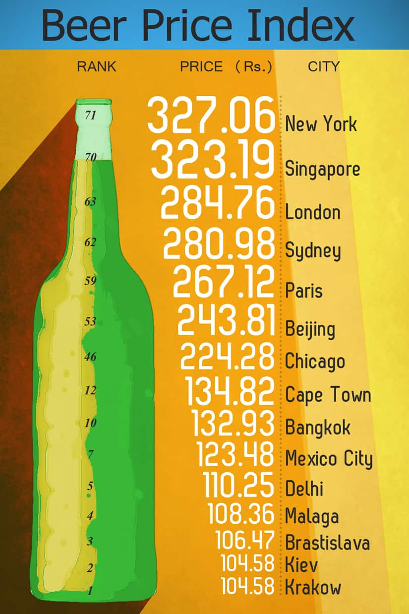 Beer loving holiday makers should head to New Delhi for their next vacation where the average price for a 330 ml bottle is just $1.75, fifth cheapest in a list of 75 cities across the world, according to a new survey.