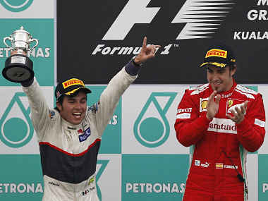 Sergio Perez’s rise to overnight stardom after the Malaysian Grand Prix shows us two things, firstly that Formula One will continue to thrill in 2012, and secondly that the young drivers are ready to show their worth and will go all out this year to prove their value. While Fernando Alonso drove the wheels of his Ferrari F2012 to win the Malaysian GP, all eyes were on Sauber’s Sergio Perez, who almost pulled off an incredible victory. His performance is also testament to the quality of young drivers in F1, most of who are only in their second year of racing in the pinnacle of motorsports. Sergio Perez, Pastor Maldonado, Romain Grosjean, Paul Di Resta, Nico Hulkenberg, Daniel Ricciardo, Bruno Senna, Jean Eric Vergne are all relatively new kids on the block with a point to prove and I foresee many of them being in F1 for the next 5-6 years atleast based on their talent. The drivers represent the ‘New Guard’ and if they want to prove a point, this is the year to do it with the teams so closely bunched together. The Australian GP saw great performances by Maldonado, Ricciardo, Hulkenberg, Grosjean, while the Malaysian GP saw stellar performances by Perez, Vergne, Di resta and Senna. [caption id=“attachment_259568” align=“alignleft” width=“380” caption=“Sauber Formula One driver Sergio Perez celebrates his second position next to Ferrari’s Alonso during the podium ceremony following the Malaysian F1 Grand Prix at Sepang International Circuit. Reuters”]
