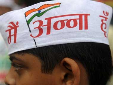 [caption id=“attachment_70849” align=“alignleft” width=“380” caption=“Instead of I am for Anna Hazare, by dropping just one word the slogan made the involvement of the wearer much more intimate. Diptendu Dutta/AFP”]  [/caption]