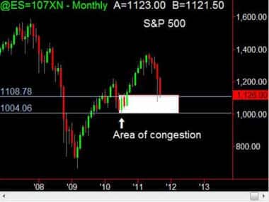 From June 2010 to August 2010, the US index moved in a 100-point range of 1,000 to 1,100. That’s where the index has been falling, too, and bouncing for the past two months. The market stayed in that range for three months and will hence take some time to break below it.