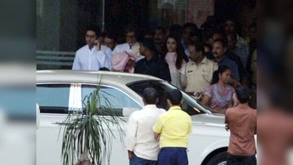 Today, a week after Aishwarya and Abhishek Bachchan’s baby girl was born (16 November), she left for her real home, Jalsa, amid a huge crowd gathered outside the hospital to catch a glimpse of the blue-eyed baby. But of course, that was not to be, as she was enveloped in a pink blanket in her grandfather Amitabh Bachchan’s arms, safe from every prying eye. [caption id=“attachment_137630” align=“alignleft” width=“380” caption=“Abhishek and Amitabh Bachchan outside the hospital with Baby Bachchan. Raju Shelar/Firstpost”]  [/caption] Abhishek, along with mother-in-law Vrinda Rai and father Amitabh took his wife and his girl home today from the Seven Hills hospital, which had become a celebrity sighting spot over the last week with the likes of Parmeshwar Godrej, Rashmi and Udhav Thackeray visiting and of course, the Bollywood brigade. She drove home, first to Prateeksha on 10th Road, Juhu, and then to the Bachchans’ current abode, Jalsa, also in Juhu, in nothing less than a Rolls Royce and a posse of cars behind them, containing their security guards and other staff. Once the girl was home, Bachchan senior and junior held a press conference subsequently today, a first of its kind, to announce the baby’s birth and how blessed they were to have a ‘Lakshmi’ in their home. After which, both of them took to Twitter, and continued to share their joy and happiness of their precious girl being home, finally. Baby Bachchan has caused hysteria of another kind simply by her birth and it doesn’t look like the interest in the little girl is going to ebb any time soon. Now that she’s home, Abhishek and Aishwarya will get busy changing nappies and showering love on their first born. Watch Slideshow of the first ever pictures of Baby Bachchan: [fpgallery id=327]