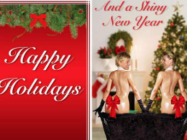Los Angeles: Kim Kardashian’s bare-dare act has found an admirer in Ellen DeGeneres and Portia de Rossi. The comedienne and her wife decided to spoof Kim Kardashian’s bare derriere act for Paper magazine for their Christmas card. “This is the time of year where you have to order your holiday cards. As you know, Portia and I started working on our holiday cards… and here’s the second one we came up with,” DeGeneres said while holding the card where they are showing off their backsides in the most hilarious way possible. [caption id=“attachment_1810173” align=“alignleft” width=“380”] Ellen DeGeneres and Portia de Rossi in their Christmas card. Image from Twitter[/caption] “Happy holidays and a shiny new year,” the Photoshopped card reads as the two recreate Kim’s memorable Paper magazine photo shoot with a giant red bow covering their modesty. “Again, we don’t know what we’re going to do yet,” DeGeneres joked. PTI