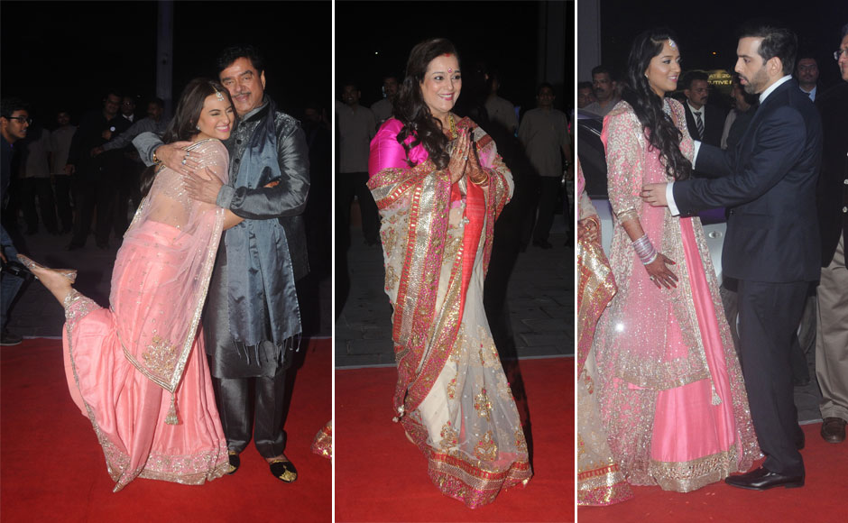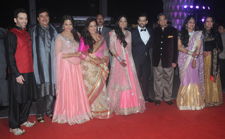 Daddy’s girl Sonakshi gives Shatrughan Sinha a tight hug. Also in the photo, Poonam Sinha and Sonakshi’s brother Kussh and his newly wedded wife, Taruna Agarwal. Sachin Gokhale/ Firstpost