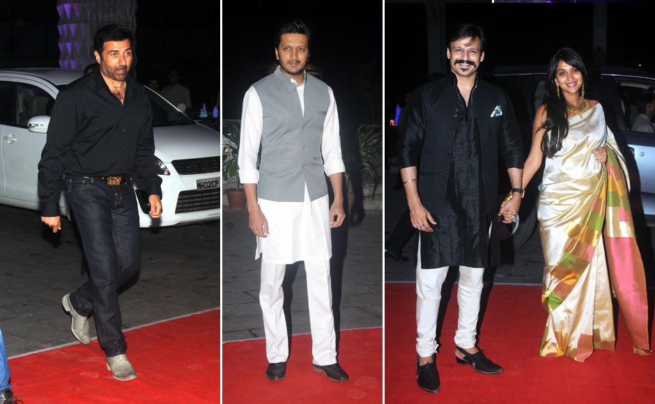 Sunny Deol, Riteish Deshmukh and Vivek Oberoi at Shatrughan Sinha’s son’s wedding. Sachin Gokhale/ Firstpost