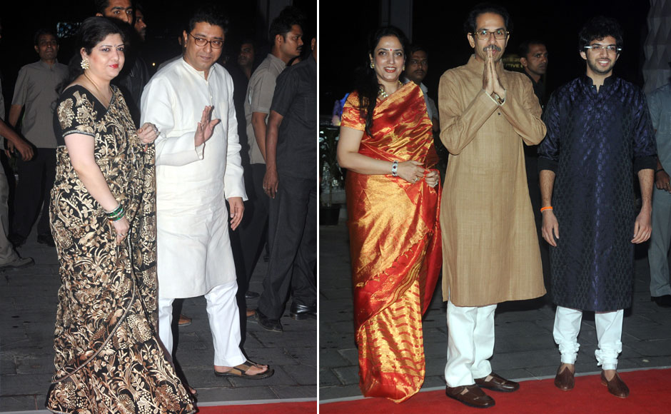 Raj Thackeray with wife Sharmila and Uddhav Thackeray with his family members , Aditya and Rashmi attend Shatrughan Sinha’s son wedding. Sachin Gokhale/ Firstpost