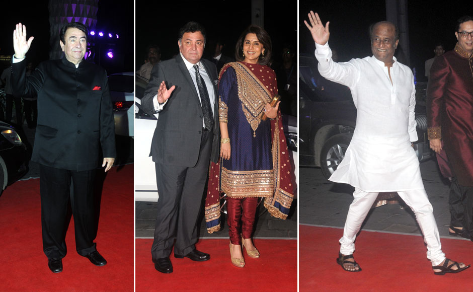 Randhir Kapoor, Rishi Kapoor with Neetu Singh and superstar Rajinikanth also attend Shatrughan Sinha’s son reception. Sachin Gokhale/ Firstpost