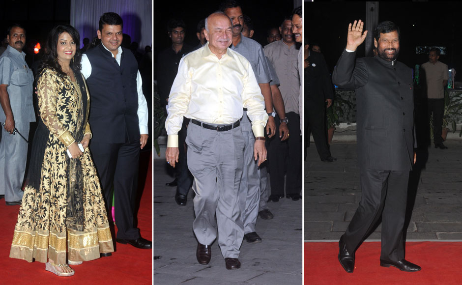 Maharshtra CM Devendra Fadnavis with wife Amruta, Sushilkumar Shinde, Ramvilas Paswan attend Shatrughan Sinha’s son Kussh’s wedding reception. Sachin Gokhale/ Firstpost