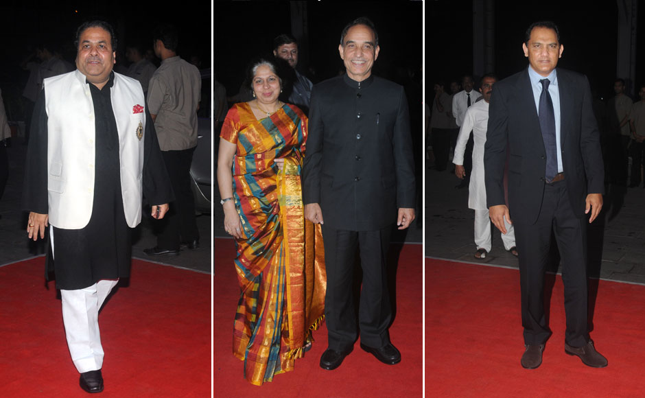 Rajiv Shukla, former Police Commissioner of Mumbai, Satyapal Singh with his wife and cricketer Mohd. Azharuddin attend Shatrughan Sinha’s son’s wedding reception. Sachin Gokhale/ Firstpost