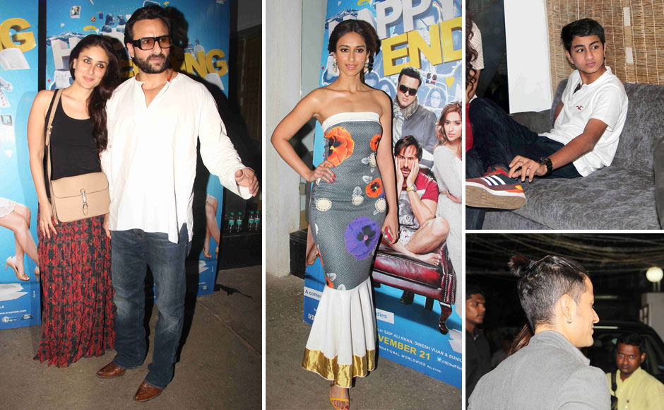 [caption id=“attachment_1808023” align=“alignleft” width=“940”]  From wife Kareena Kapoor, son Ibrahim Ali Khan to going-to-be brother-in-law Kunal Khemu, everyone from Saif Ali Khan’s family was there to watch his upcoming film Happy Ending. Also in the photo, Ileana D’Cruz. Sachin Gokhale/ Firstpost[/caption] [caption id=“attachment_1808027” align=“alignleft” width=“940”]  Saif Ali Khan’s son Ibrahim chilling with his aunt Soha Ali Khan. Ibrahim is Khan’s second child from his marriage with Amrita Singh. Sachin Gokhale/ Firstpost[/caption] [caption id=“attachment_1807903” align=“alignleft” width=“940”]  Still in his quirky Happy Ending character, Saif Ali Khan turned up in an over-sized kurta and geeky glasses for the screening of the film. Also in the photo, Kareena Kapoor. Sachin Gokhale/ Firstpost[/caption] [caption id=“attachment_1807911” align=“alignleft” width=“940”]  Ileana D’Cruz and Kalki Koechlin will be seen with Saif Ali Khan in his upcoming film, Happy Ending. Also in the photo, Khan’s sister Soha Ali Khan. Sachin Gokhale/ Firstpost[/caption] [caption id=“attachment_1807905” align=“alignleft” width=“940”]  Kunal Khemu rocked a short ponytail at the screening of Happy Ending. Sachin Gokhale/ Firstpost[/caption] [caption id=“attachment_1807907” align=“alignleft” width=“940”]  Nargis Fakhri turned up in casual jeans and t-shirt to watch Happy Ending. Sachin Gokhale/ Firstpost[/caption] [caption id=“attachment_1807909” align=“alignleft” width=“940”]  Saif Ali Khan’s son Ibrahim is the spitting image of his dad. Also in the photo Kunal Khemu. Sachin Gokhale/ Firstpost[/caption]