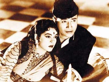 For a complete list of Dev Anand songs click here at In.com Dev Anand didn’t get noticed in his first seven films because his looks or his acting skills weren’t that of a star’s in that traditional sense. The heroine that he was paired with in those first seven ‘unnoticed’ films, however, Suraiya, was. The film that first put Dev Anand on the map was Vidya (1948). This film began an extraordinary 30-year stretch during which Dev Anand would build an enviable woman following, that ignored, his growing older. Until then, while he hadn’t made his mark as an actor yet, he was certainly making a reputation for himself as a lover-boy, thanks to his affair with Suraiya. That Suraiya was a Muslim and Dev Anand a Hindu forced the affair to be a clandestine one, replete with secret meetings arranged by close friends. The relationship ended because of the pressure on Suraiya to break up with Dev Anand. [caption id=“attachment_148259” align=“alignleft” width=“380” caption=“By the 60s, women filmgoers saw a new Dev Anand, one they would make movie-goers swoon over for the next few decades. Image courtesy CNN IBN”]  [/caption] Perhaps, the break-up was good for Dev Anand. He played second fiddle in all Suraiya-starring films, as Suraiya’s name in the credits sold the films, leaving Dev Anand’s acting talent a question mark. In 1949, Dev Anand launched his own production house, Navketan, which immediately meant that he could cast himself as he saw fit, playing second fiddle to none. The first film from Navketan, Baazi, saw him paired with Kalpana Kartik, a pairing that would be seen in a number of subsequent films, till they fell in love and got married. The marriage ended Kartik’s career and Dev Anand moved to other actresses. By the 60s, women filmgoers saw a new Dev Anand, one they would make movie-goers swoon over for the next few decades. He was paired with the leading actresses of the era; with Nutan, with Meena Kumari, Mala Sinha, Sadhana Shivdasani, Asha Parekh, Simi Garewal and Nanda. It was his role as a playboy in Teen Deviyaan that defined the new Dev Anand, the romantic Dev Anand. He co-starred in the path-breaking Hare Rama Hare Krishna with Zeenat Aman in the film that would be his first directorial success, following the success with a hit film with the other superstar of the era, Mumtaz, in Tere Mere Sapne.