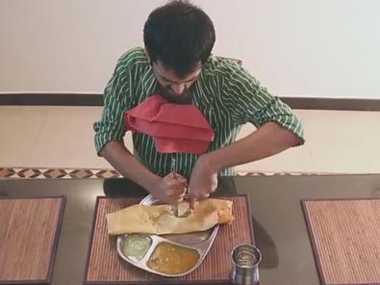 Screengrab from video[/caption] To help us know what are the do’s and dont’s, comedy group Culture Machine has uploaded a new video titled ‘Enna Da Rascalas’. Titled ‘How to annoy a person from Chennai in 60 seconds’, the one minute fourty-five second long clip hits the right note. Directed by Mathivanan Rajendran and Bhargav Prasad and starring Kiran Naig, the video features various things we unknowingly do that tick off people who are from Chennai. It starts off with the Naig trying to eat a dosa with a fork and knife (as seen in the picture above) and goes on to highlight several other antics, like comparing the city of Chennai with other cities, calling people who reside in Chennai as ‘Madrasis’ (oh no! you didn’t), not knowing how to eat from a banana leaf and trying to drink filter coffee without the froth among other things. What makes the video work is Naig’s hilarious expressions as he moves on from doing one thing to another that would annoy people who live in Chennai and its apt selection of annoying things that Chennaities have to tolerate.