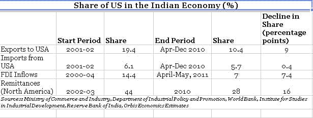 While the recent downgrade of the US by S&P might have fuelled speculation on the imminent decline of the US economy, for India the US has actually been losing significance for much of the last decade. In other words, India has lesser reason to worry on account of the US than a decade ago.
