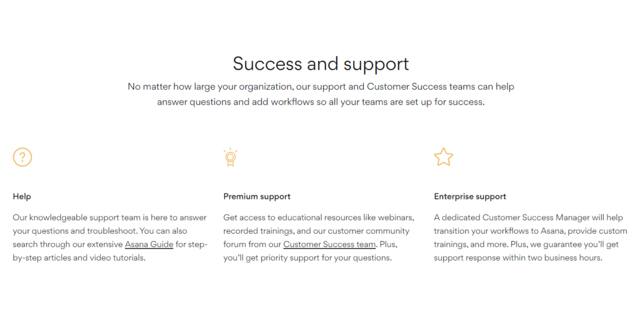 has a special plan called Enterprise, which caters to the requirements of big companies. This plan includes features such as SAML, data export and deletion, user provisioning, and customized branding. It’s important to mention that this is the sole plan that provides round-the-clock support. But the cost-related details of this plan are not disclosed to the public, so interested customers need to get in touch with the Asana app’s sales team to get more information.