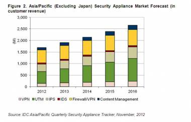 The security appliance market in the Asia/Pacific excluding Japan (APEJ) region grew to $344.5 million in factory revenues in the second quarter of 2012, according to IDC’s Asia/Pacific Quarterly Security Appliance Tracker. This represents a growth of 10 percent from the same quarter in 2011, and shipments increased 6.6 percent.
