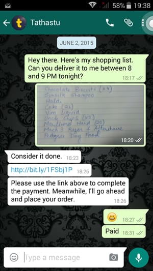 In Mumbai and need someone to urgently deliver a birthday cake and Coca Cola in the middle of the night? Or do you need to be rescued from your broken down car in the middle of nowhere? Now just click on tathastu and your prayers will be answered. Started by four IIT-Bombay graduates, Tathastu is a startup that gets your things done for you. The idea is that you don’t waste your time doing anything you don’t want to do. Just Whatsapp them what you want, whenever you want it, and they will do it for you. [caption id=“attachment_2371152” align=“alignleft” width=“380”]