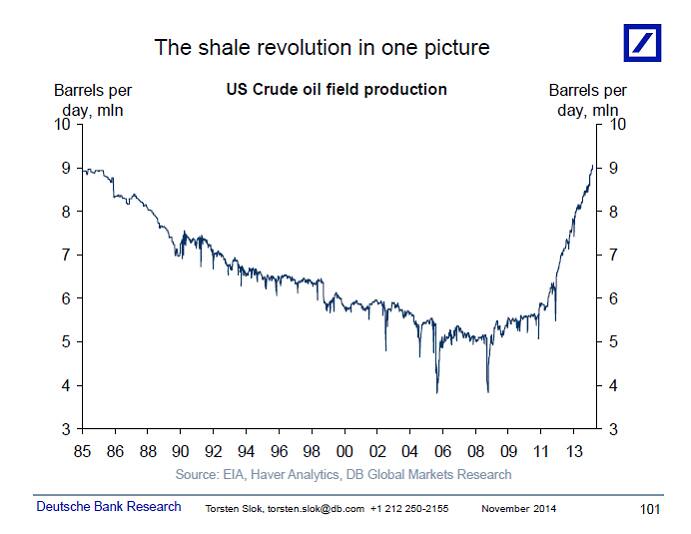 One reason for this is that the money that has already gone into producing shale oil is essentially a sunk cost. Hence, production is not going to be stopped immediately. As Ben Hunt who writes the Epsilon Theory newsletter puts it “There’s just too much non-cartelized money, technology, and political capital invested in US shale production to slow it down.”