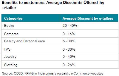 A recent report by the Internet and Mobile Association of India (IAMAI) and KPMG titled ‘e-Commerce Rhetoric, Reality andOpportunity’has calculated the average discount rates of various items available online for sale.
