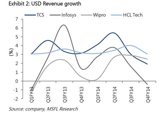 Revenue growth: A sticky area for Infosys. The following graphic shows how the company’s revenue growth has been compared with its peers. In the post results statement, while Infosys was cautious about revenue growth outlook for the next year, TCS looked more confident.
