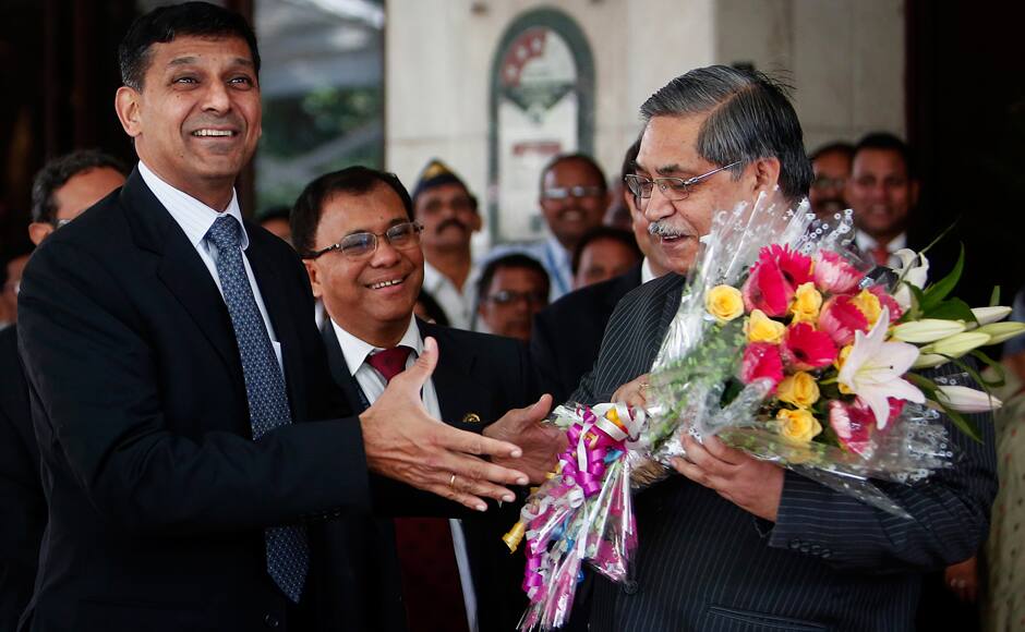 [caption id=“attachment_108475” align=“alignleft” width=“940”]  Raghuram Rajan (L), newly appointed governor of Reserve Bank of India (RBI) receives a bouquet from RBI deputy governor K C Chakrabarty after his arrival at the bank’s headquarters in Mumbai. Reuters[/caption]