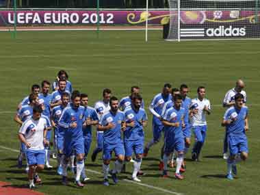 Legionowo, Poland: For Greece’s players, politics is off limits.[caption id=“attachment_349735” align=“alignleft” width=“380” caption=“Greece players warm up during a training session at the Euro 2012 soccer championship in Legionowo . AP”]  [/caption]