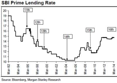 In a recent research report, Morgan Stanley compiled the interest rate movements in the economy over the last five general elections.
