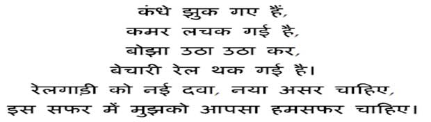 Trivedi said that due to rise in road transport people are increasingly preferring railways putting the system under severe stress. “…a large chunk of short distance passenger traffic has got diverted from road to rail, creating additional pressure on rail infrastructure”’ he said. The minister said that the railway is tired of the ever-increasing traffic. Paraphrasing what he meant in the verse below, Trivedi appealed to all to support the railways for sustaining the institution.