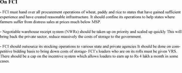 The report of the High Level Committee on Reorienting the Role and Restructuring of Food Corporation of India submitted to the Prime Minister on Wednesday, makes a slew of suggestions.