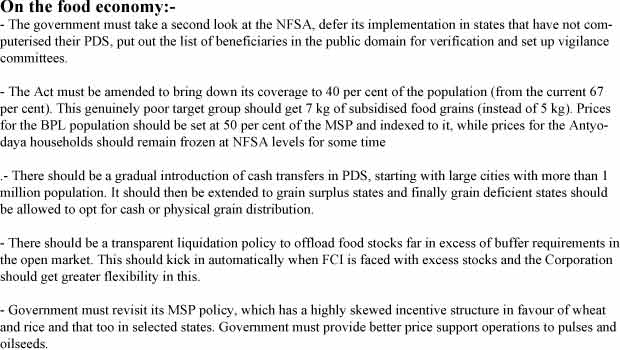 In 2001, the Hyderabad-based Administrative Staff College of India (ASCI) was asked by the National Democratic Alliance (NDA) government to study the costs of acquisition and distribution of food grains by the Food Corporation of India (FCI). After making a slew of suggestions, the report’s author Gautam Pingle said the report was not making recommendations on “the more serious issue – of food grain policy” because it was beyond its scope. But the report underlined the fact that “the shape and dimensions of the policy affect FCI operations”. [caption id=“attachment_2060415” align=“alignleft” width=“380”]  Reuters image[/caption] Thirteen years later, a committee set up by another NDA government decided not to hold itself back. The report of the High Level Committee on Reorienting the Role and Restructuring of Food Corporation of India submitted to the Prime Minister on Wednesday, makes a slew of suggestions on seemingly unrelated topics - the National Food Security Act (NFSA), cash transfers to farmers as well as below poverty line (BPL) consumers, minimum support prices (MSP), deregulating urea prices and much more.  Rejecting criticism that the committee was exceeding its brief - nowhere in its terms of reference has it been asked to look into these issues – committee chairman Shanta Kumar and member Ashok Gulati pointed out (much like Pingle did in his report) that all these issues are deeply inter-related and have a bearing on how FCI goes about its work. The report notes that the FCI has three main objectives in terms of the food economy – giving effective price support for farmers, providing foodgrains for the public distribution system (PDS) and maintaining buffer stocks for food security. It then points out that none of these three objectives are being met – MSP benefits only 6 percent of farmers, PDS suffers from huge leakages, and the buffer stocks are often far above the requirement leading to huge costs being incurred in storing them and food grains often rotting. Acknowledging that the FCI is not responsible for a lot of this – it is not involved in food policy formulation – the report says “a desirable solution to FCI’s restructuring cannot be found unless one looks at the issue of food security somewhat holistically”. Yes, many of these suggestions are not radically new. They have been part of the food economy reforms discourse for some time now. But, along with the proposals relating specifically to FCI’s operations, they give the Narendra Modi government a template to work on to bring about a complete much-needed overhaul of the food economy. But will it lead to an overhaul of the FCI? And isn’t that needed? The report admits that FCI has been in the phase of diseconomies of scale and has been due for restructuring and unbundling long back.It does talk about FCI becoming an Agency for Innovation in Foodgrain Management Systems. But it has not recommended an unbundling of FCI either on functional lines or on geographical lines (something the ASCI report did).Gulati says the report’s recommendations relating to re-orienting the role of FCI in procurement and movement of foodgrains amount to a restructuring.  However, it skips the issue of autonomy for FCI (barring saying that it should get more freedom in open market sales), even though it acknowledges that the Corporation does not operate on business principles in spite of its terms of reference saying it should. Can any public sector undertaking act on commercial principles unless it is assured a large measure of autonomy? The ASCI report had made a clear case for full autonomy for FCI in all its operations, saying this was the only way to hold it responsible for its performance. The report is also silent on the role of the artiya (the middlemen) in the whole procurement process. The commissions to these artiyas runs into a few hundred crores and the ASCI report had called this an unnecessary cost. By not dealing with these issues in detail (its brief, after all, was restructuring the FCI), the report could attract the criticism that it was using FCI as a cover to push unpopular food economy reforms. Indeed, many of its recommendations are going to be unpopular, notwithstanding their soundness. The proposal on amending the NFSA will promptly be dubbed a dilution, even though it talks of better targeting and giving more to BPL families. The Congress, Left and all the rights-based entitlements supporters will be up in arms over this. Shanta Kumar did not make things easier by saying, while addressing a press conference, that there had been misgivings about the 67 percent coverage of the NFSA within the BJP but it had voted for the bill because it was an election issue. Another proposal to bring down statutory levies on food grains be restricted to 3-4 percent and later it should be incorporated in the MSP will also be strongly opposed by states like Punjab, Andhra Pradesh, Haryana and Odisha where it is upwards of 10 percent. Large farmers and governments of states where they dominate will also try and block any changes to the MSP policy on the lines the committee has recommended. And there’s going to be huge opposition within FCI, not just from the unions but also the managerial cadre. A lean and mean organisation on the lines the report envisages will mean more accountability for the employees. But despite some of its shortcomings, the report sets out a comprehensive overhaul of the food economy. This overhaul is long overdue. The government may have to bite many bullets in implementing these recommendations, but these need to be bitten.