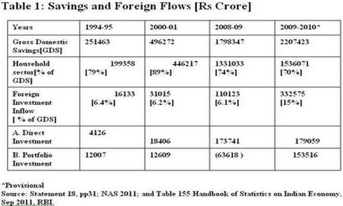 The threat has been used ad nauseam in spite of the fact that FDI and foreign institutional investment (FII) constitute less than 10 percent of our investment rate. Only in 2009-10 does the provisional number show FII and FDI inflows put together at nearly 15 percent of our domestic savings. The biggest chunk of our investment is financed by our own domestic savings and in that household savings is the dominant component. In other words, the average Indian housewife is responsible for financing our growth and not the FII or FDI or even our corporates. See table below: