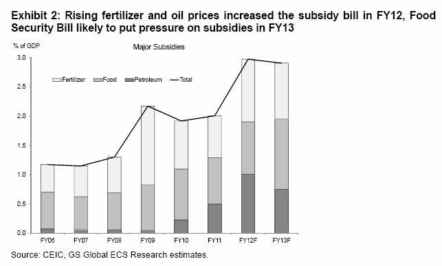 “On the expenditure front, while we expect increases in food subsidies due to the implementation of the Food Security Bill, we expect the Budget to have growth in total expenditure lower than in the financial year ending March 2012. We think this will come from slower growth in non-subsidy current spending,” the report said.
