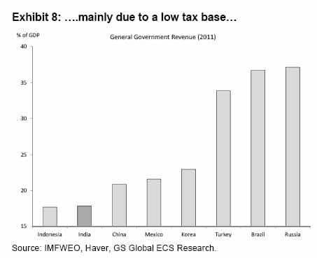This is largely due to a low tax base, rather than too much government spending, the brokerage said. Like most other experts, the brokerage’s economists, Tushar Poddar and Vishal Vaibhaw, thought that Finance Minister Pranab Mukherjee would focus primarily on fiscal consolidation, or getting its finances back into shape.