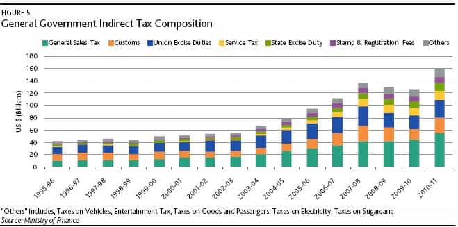 One, structural factors such as low per capita income keeps tax collections low. “Low average incomes and a high poverty rate result in a very small portion of the labor force being eligible to pay personal income taxes. As of 2010-11, income taxes accounted for a lower proportion (10 percent) of the general government’s revenue than, say, the OECD average (approximately 30 percent),” said Moody’s.