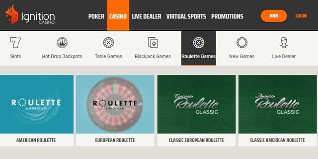 2. Ignition Casino – Best Variety of Real Money Roulette Online Games