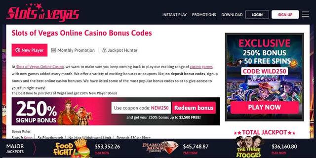 Slots of Vegas : 250% match bonus + 50 free spins