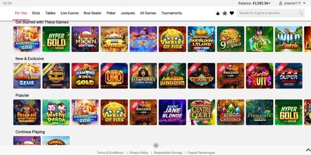All the latest titles are clearly listed as new, while all the Drops & Wins games are neatly displayed in a separate category.