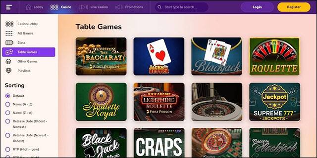 The casino’s homepage has all the essential links, allowing you to navigate to the games and promotions sections conveniently.