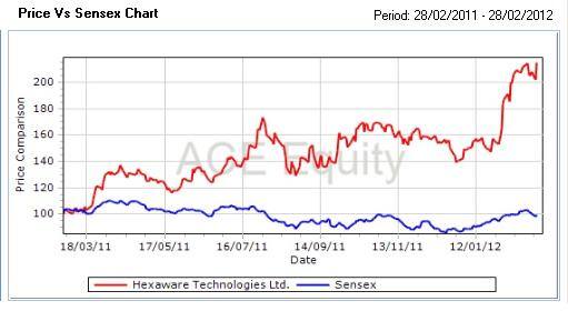 Shares of Hexaware Technologies have jumped more than 17 percent in the past month, outperforming both the Sensex (-2.7 percent) and the BSE IT Index (3.9 percent).