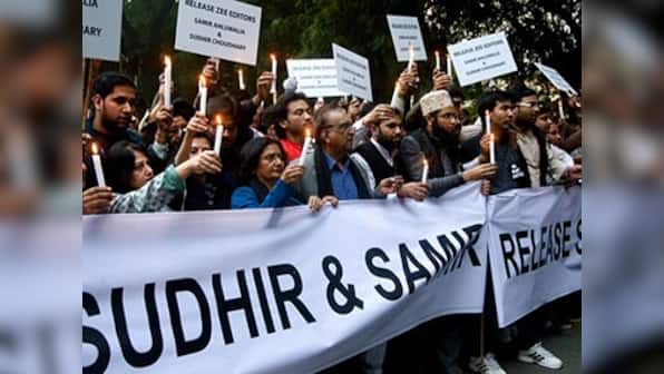 [caption id=“attachment_583938” align=“alignleft” width=“380”]  Chaudhary and Zee Business Editor Samir Ahluwalia were arrested on November 27, 2012 on a complaint by Jindal’s firm that they had demanded Rs 100 crore as an advertising deal for not airing “negative” news reports against JSPL. Naresh Sharma/Firstpost[/caption]